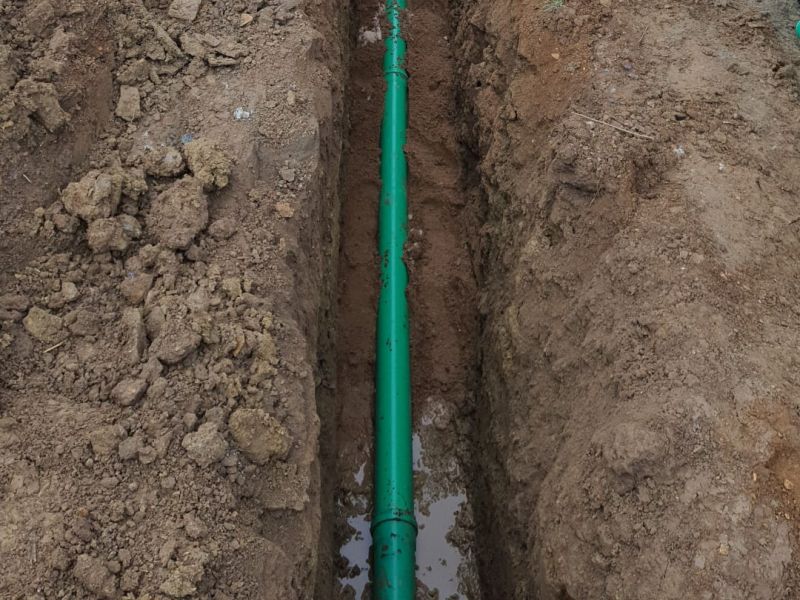 Bei diesem Projekt wurden Tiefbauarbeiten zur Verlegung von Versorgungsleitungen durchgeführt. Dafür wurde ein Graben entlang des Gebäudes ausgehoben und die entsprechenden Rohre fachgerecht verlegt. Durch eine präzise Ausführung wird eine sichere und langlebige Infrastruktur gewährleistet.